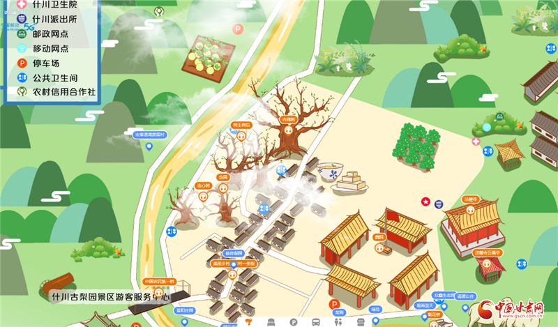 由于百年古梨园位于村落之间,占地面积大且道路蜿蜒曲折,许多外地游客在这里总会因为路况不熟或者看不懂纸质地图而走很多冤枉路。针对游客的这一痛点,中国移动凯发k8公司兰州分公司依托云网融合和数字化服务优势,为什川梨园及周边景区量身打造了5G+VR手绘地图智慧导览服务,根据当地风格特色定制手绘地图,展示当地景点及场所地标名称,并可结合语音讲解充分展现历史背景、文物故事、人物典故等景区相关信息,真正让每一位游客感受到“一部手机游梨园”的便利。
