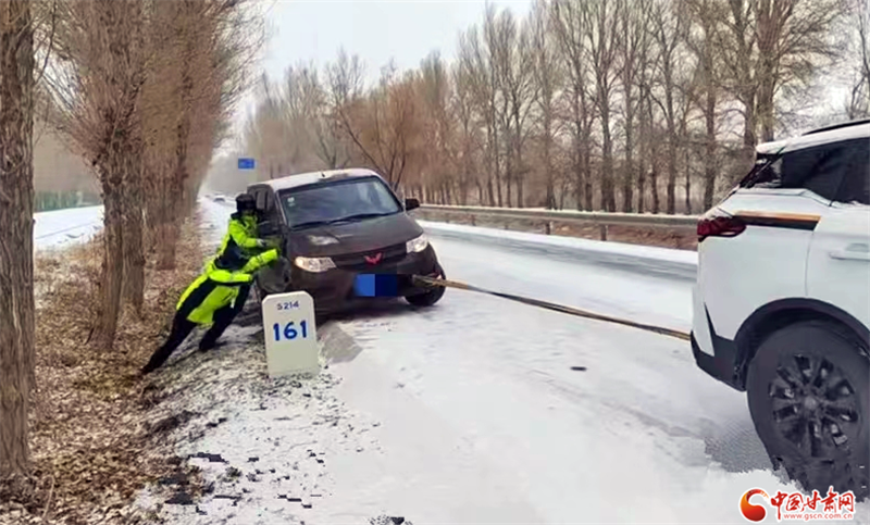金塔县公安局交警大队民辅警救援被困车辆