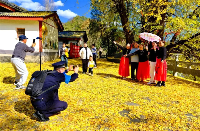被秋色渲染的诗和远方背后,“警察蓝”早已与山水和谐同框。晨雾中,成县公安的无人机如雄鹰掠过鸡峰云海;金黄的稻田里,“驻村辅警”用乡音化解着邻里纠纷;徽县嘉陵江畔,特警的身影在江风中坚定挺立。这些画面共同绘就了一幅新时代的“警旅融合图”。