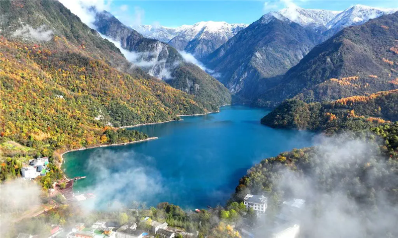 晨光初露,官鹅沟的薄雾尚未散尽,泽荡湖面倒映着如黛青山。游客们纷纷举起手机,将这幅山水画卷定格,而一支巡逻警队的藏蓝身影,也悄然融进了这水天一色中。