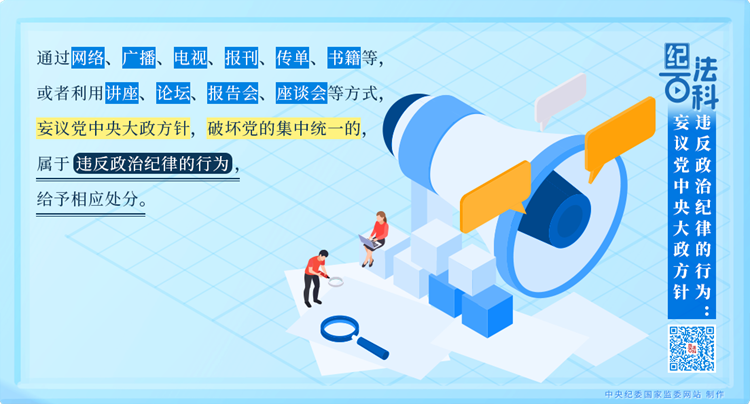 执纪监督中发现,有的党员、干部“当面不说、背后乱说”“会上不说、会后乱说”“台上不说、台下乱说”,对党中央大政方针说三道四。这些言论扰乱党员、干部思想,破坏党的团结统一,妨碍党中央大政方针的贯彻落实,必须依规依纪严肃处理。