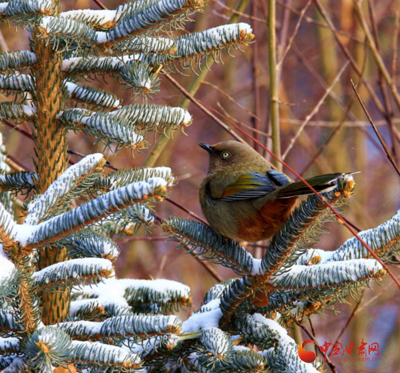 祁连山国家公园(候选区)高清影像定格橙翅噪鹛灵动身姿