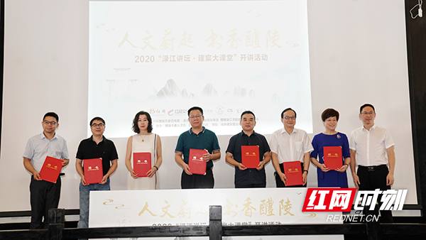 启动仪式上,现场授予著名作家、湖南省作家协会主席王跃文,湖南出版集团党委委员、湖南红网新媒体集团党委书记、董事长舒斌,湖南红网新媒体集团副总经理、总工程师、湖南红网文化传播有限公司董事长孔泽平,湖南省社科院文学研究所所长卓今,《芙蓉》杂志社社长、主编、湖南文艺出版社副社长陈新文,湖南大学新闻与传播学院教授、硕导、湖南省礼仪文化研究会会长袁涤非,湖南师范大学法学院教授、硕导、国际法研究所所长吴智等7位专家“渌江讲坛客座教授”荣誉。接下来,这批客座教授将择期赴醴陵开展讲学活动。