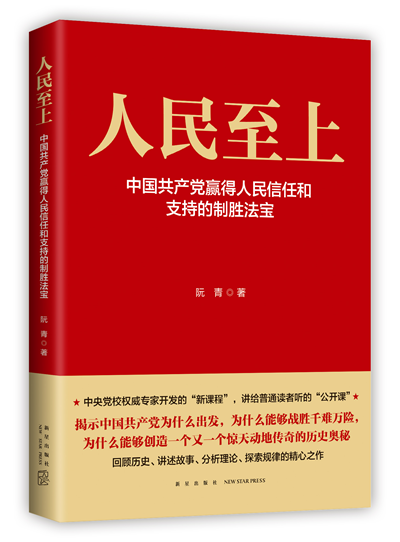 近日,由中共中央党校(国家行政学院)哲学部马克思主义哲学教研室原主任、教授、博士生导师阮青撰写的新作《人民至上——中国共产党赢得人民支持和拥护的致胜法宝》一书由中国外文局新星出版社正式出版发行。