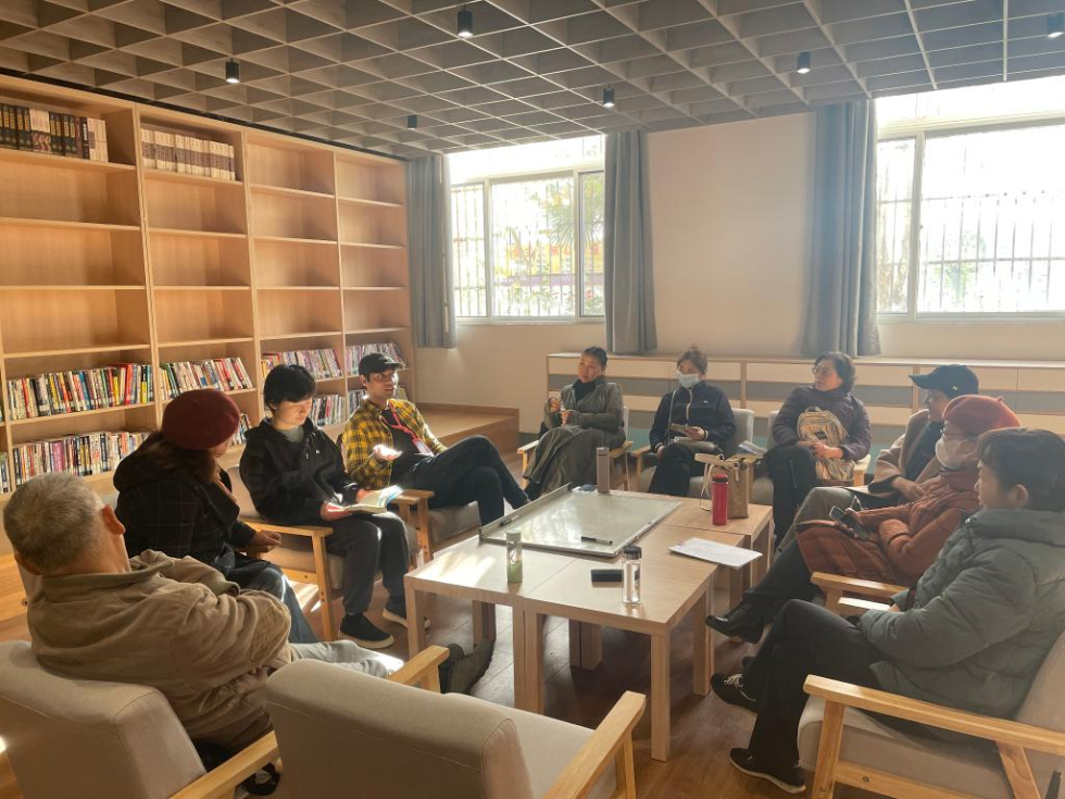 在图书馆的一角,数十位老人围坐一团,围绕着一个话题开展热烈的讨论和交流。尽管老人们的发音不够标准,表达不够流畅,但这丝毫没有影响大家“开口说话”的热情。