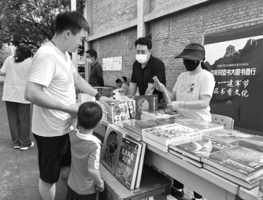 中关村图书大厦携手西郊机场居民委员会走进西郊机场家属区,开展“八一建军节 品书香文化”主题宣传活动。