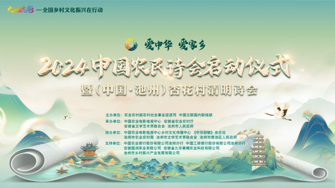 大地流彩,诗赋“三农”。3月31日,“大地流彩—全国乡村文化振兴在行动”重点活动“爱中华爱家乡”2024中国农民诗会启动仪式暨(中国·池州)杏花村清明诗会在安徽池州杏花村文化旅游区举办,主题为“春和景明诗出池州”。本次活动由农业农村部农村社会事业促进司、中国文联国内联络部主办,中国农业电影电视中心、安徽省农业农村厅、安徽省文学艺术界联合会、池州市人民政府承办。